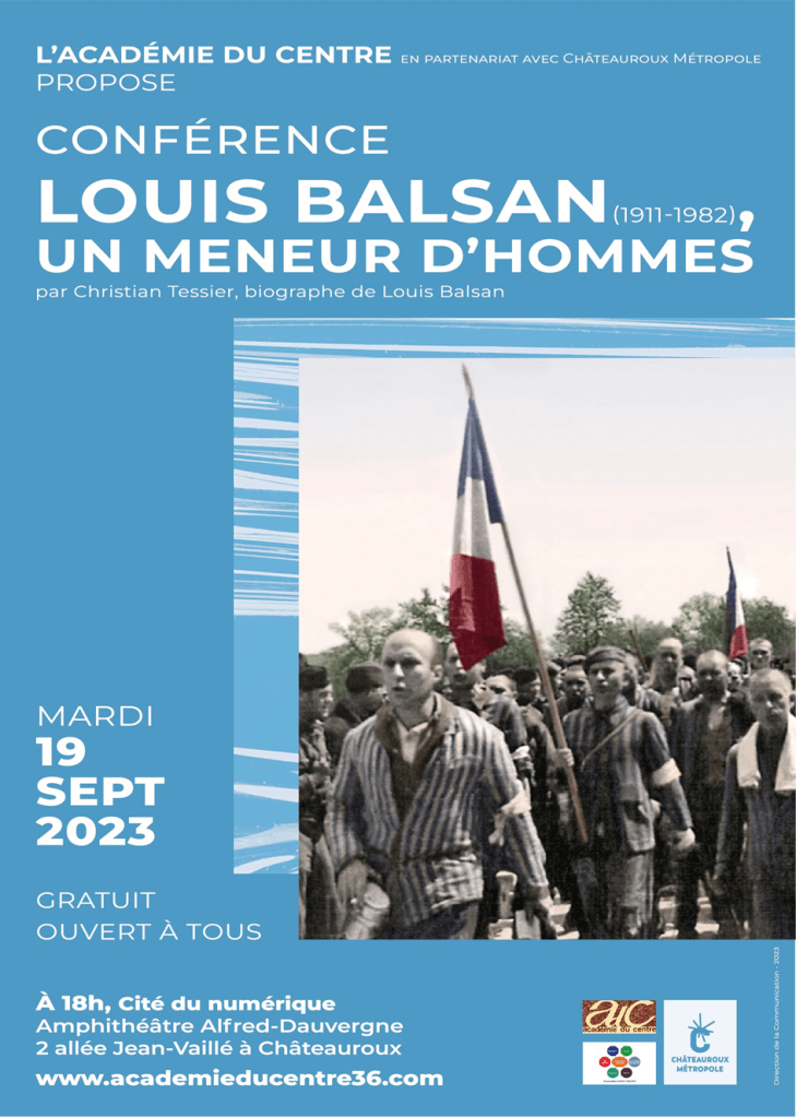 La prochaine conférence de l’Académie du Centre aura lieu le mardi 15 octobre à 18h.15 à la salle Pierre Balsan de l’école HEI, 2, rue Jean Vaillé à Châteauroux. (Elle sera précédée de l’Assemblée Générale 2023-2024 à 16h.45).